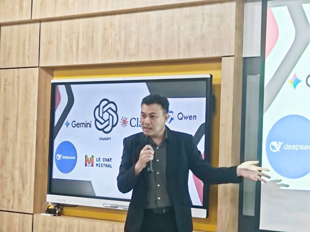 การอบรมครั้งนี้ได้รับเกียรติจาก อาจารย์ ดร.เนติฐ์ไน จีนสกุล เป็นวิทยากรถ่ายทอดองค์ความรู้ด้านเทคโนโลยีดิจิทัลและเครื่องมือ AI โดยเนื้อหาครอบคลุมการใช้งานแพลตฟอร์ม AI ที่สำคัญ อาทิ ChatGPT, Gemini และ Qwen เพื่อการสร้างเนื้อหา การวิเคราะห์ข้อมูล และการสนับสนุนการเขียนผลงานทางวิชาการ รวมถึงการประยุกต์ใช้ Google Apps Script เพื่อพัฒนาและจัดการแบบฟอร์ม (Google Forms) ให้มีประสิทธิภาพมากยิ่งขึ้น