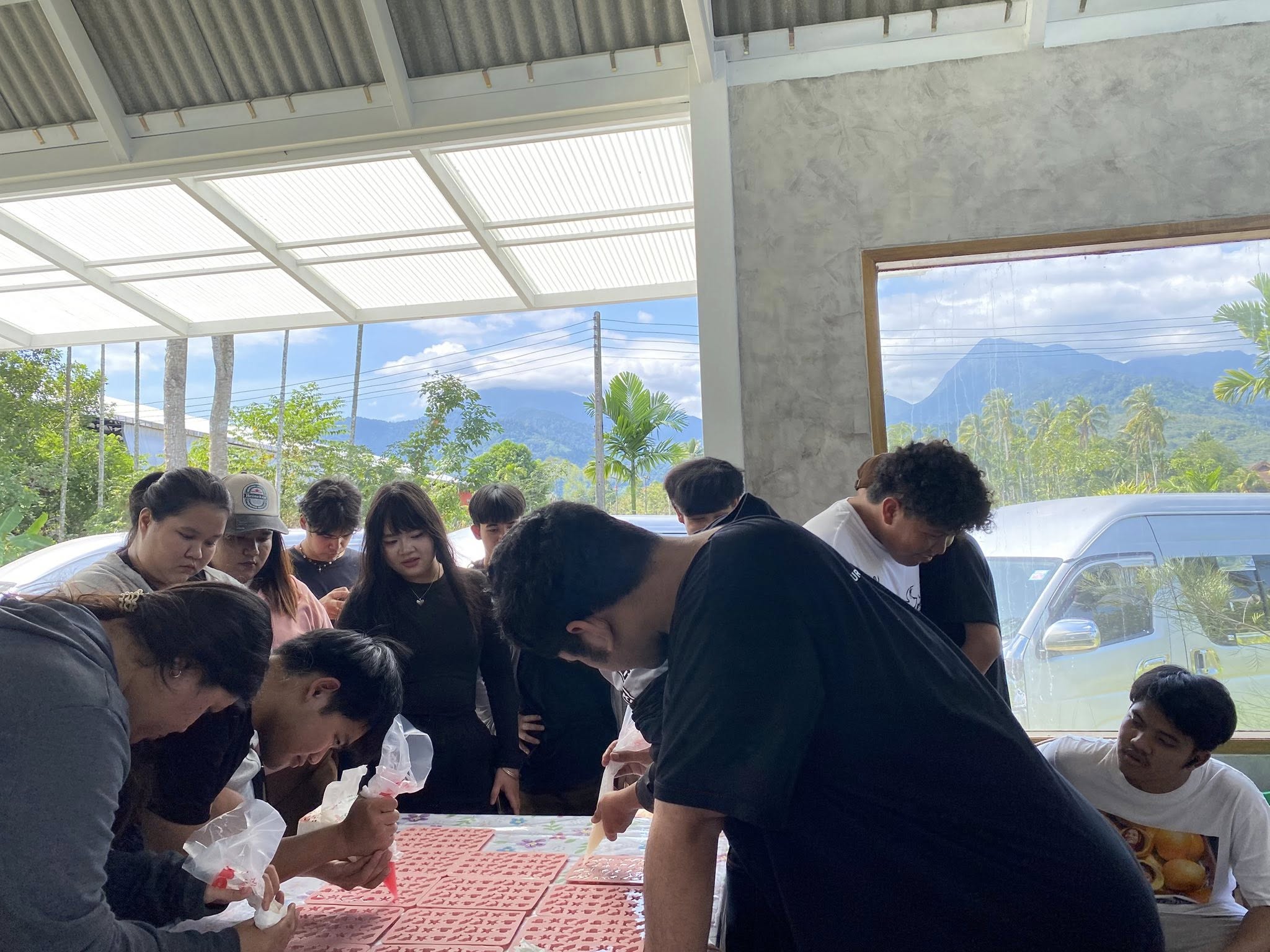 - กิจกรรมอบรมเชิงปฏิบัติการด้านวัตถุดิบท้องถิ่น ณ ฟาร์มพรมคีรี เพื่อให้นักศึกษาได้เรียนรู้การใช้วัตถุดิบท้องถิ่นอย่างสร้างสรรค์และเกิดมูลค่าเพิ่ม