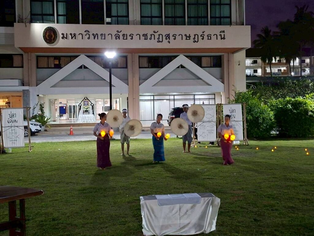 นักศึกษาสาขาวิชาศิลปะการประกอบอาหารไทยและอาหารนานาชาติ ชั้นปีที่ 1 ได้เข้าร่วมกิจกรรมการเรียนรู้เชิงบูรณาการ ในรายวิชา วิถีชีวิตกับสังคม โดยนำองค์ความรู้ด้านวัฒนธรรมและอัตลักษณ์ความเป็นไทยมาประยุกต์ผ่านการแสดงนาฏศิลป์ชุด “ผืนไท” ภายใต้แนวคิด “เด็กเชฟวางตะหลิวมารำ” เพื่อส่งเสริมความเข้าใจในบริบททางสังคมและวิถีชีวิตของชุมชนไทย